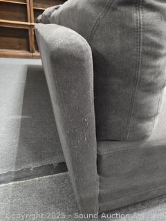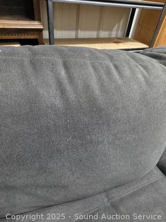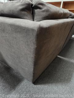 Some cat scratches in upholstery, wear spots. Approx. Approx. 28" H x 9ft x 9ft x 17" to seat. Refer to photos for more details.