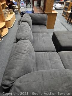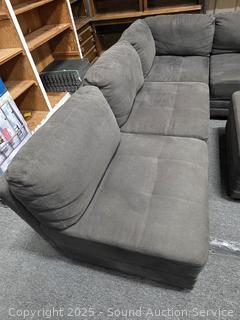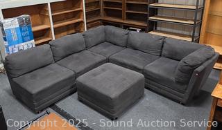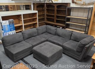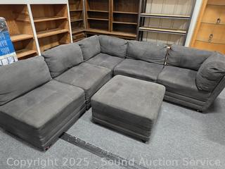 Lot #0001: 6pc Gray Upholstered Modular Sectional Sofa