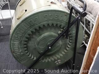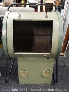 Some weathering, wear from use. 44" H x 30" x 30" tumbler.