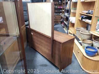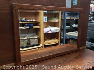 Some minor scuffs, scratches on the top, overall great condition. Beveled mirror. 30" H x 61" W x 18.5" D with 28" H x 42.5" mirror.