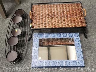 Lot #0087: Lap Tray, Candleholder, Mirror