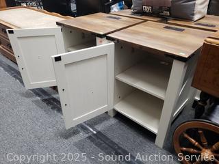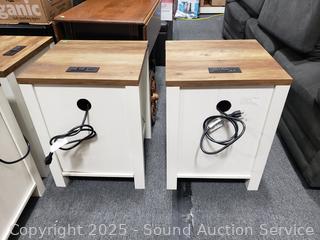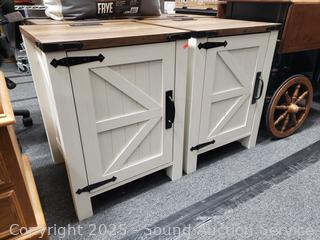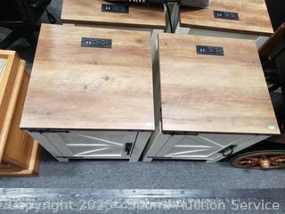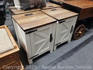 Lot #0029: Pair of Country Home Side Table Barn Door Cabinets w/Power