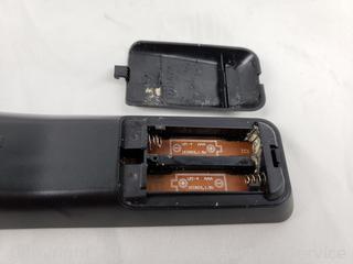 Has power, reads, discs. Remote battery housing has rust/corrosion & cover won't stay on.