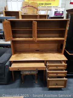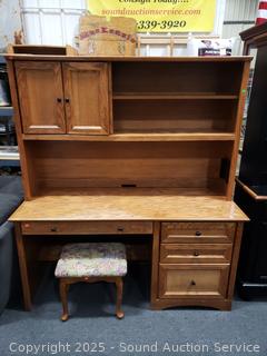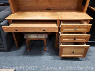 Lot #0025: Thornwood 2pc Oak Computer Desk w/Stool
