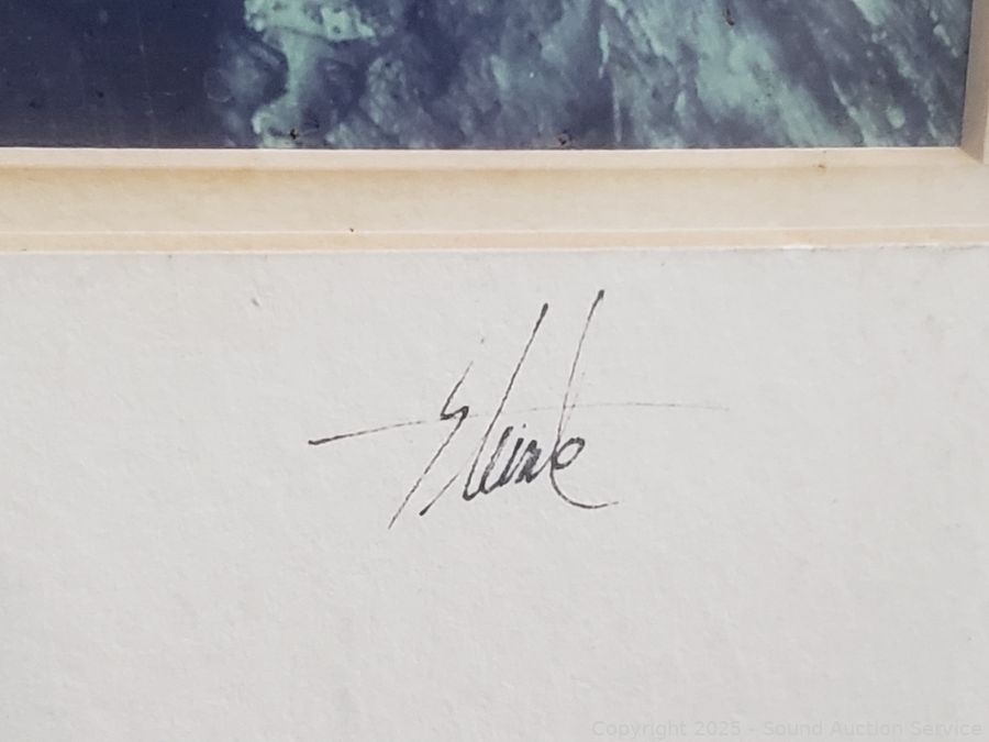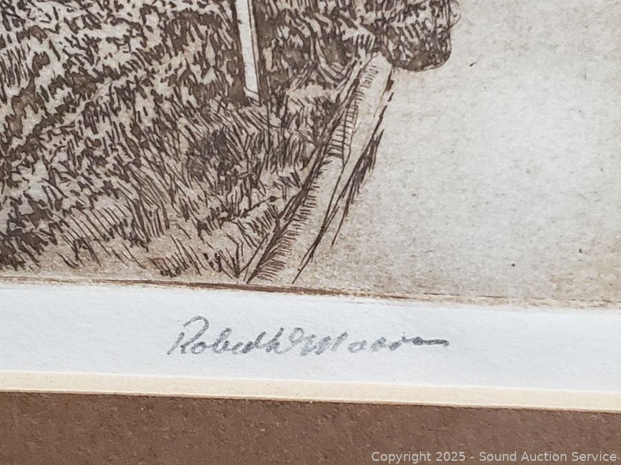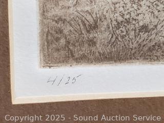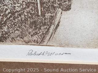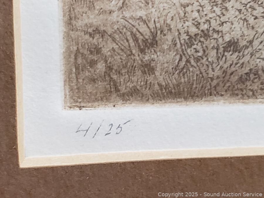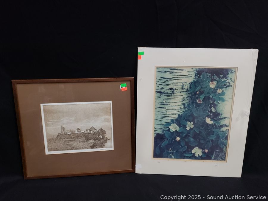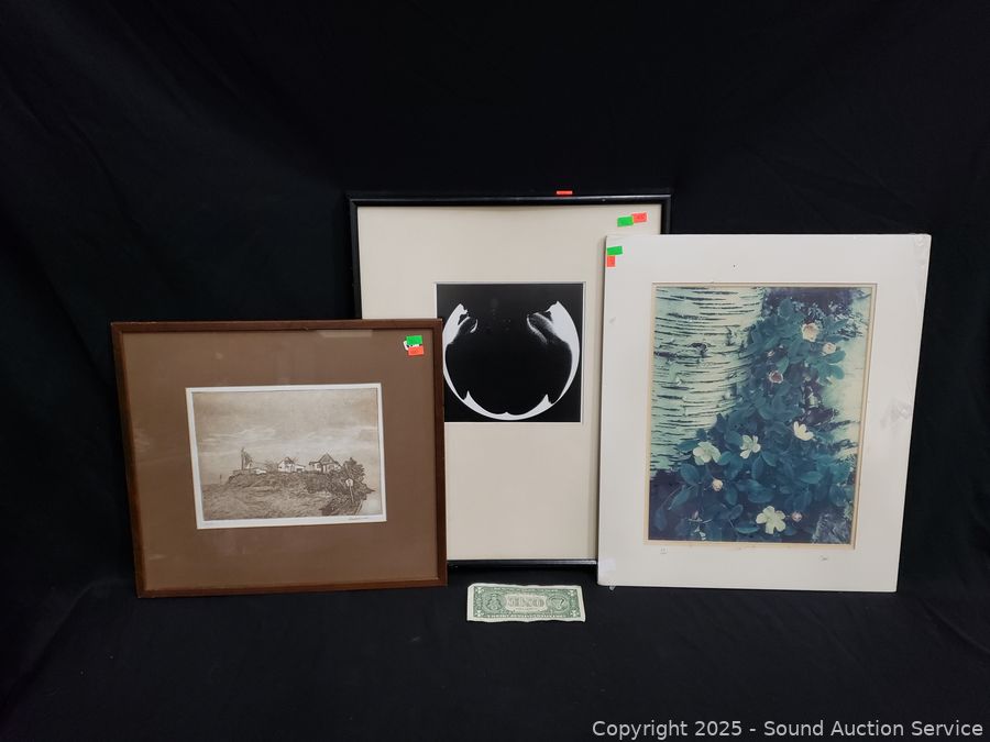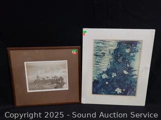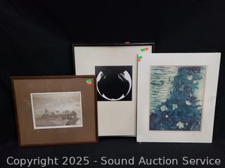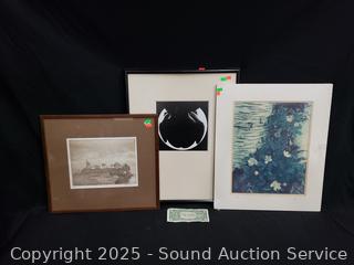 Lot #0161: Vtg. Signed Cottage Etching, Abstract Print & Signed Photo