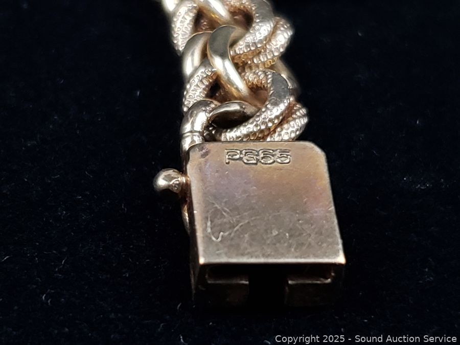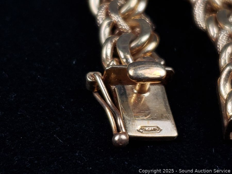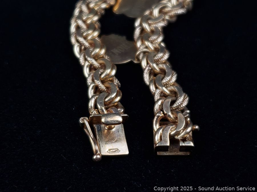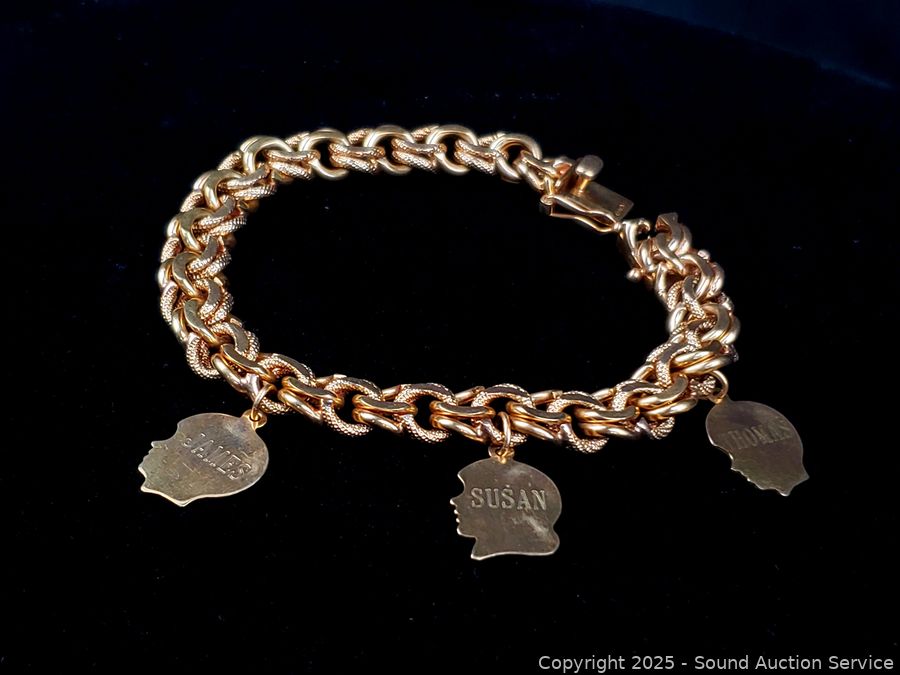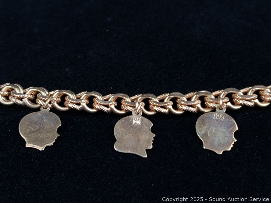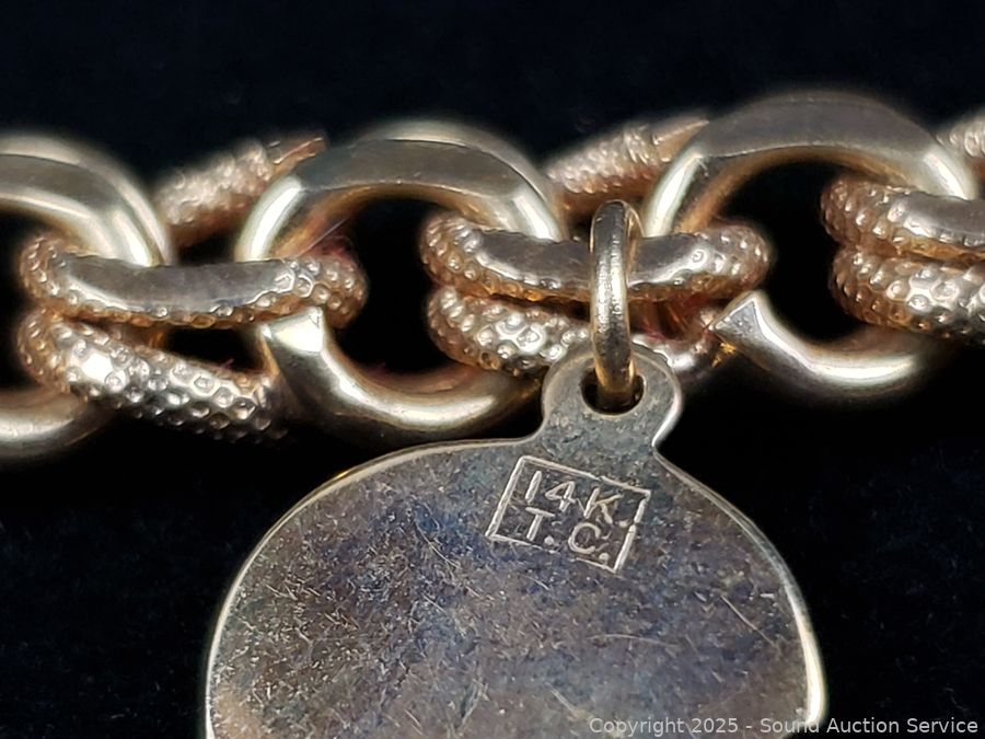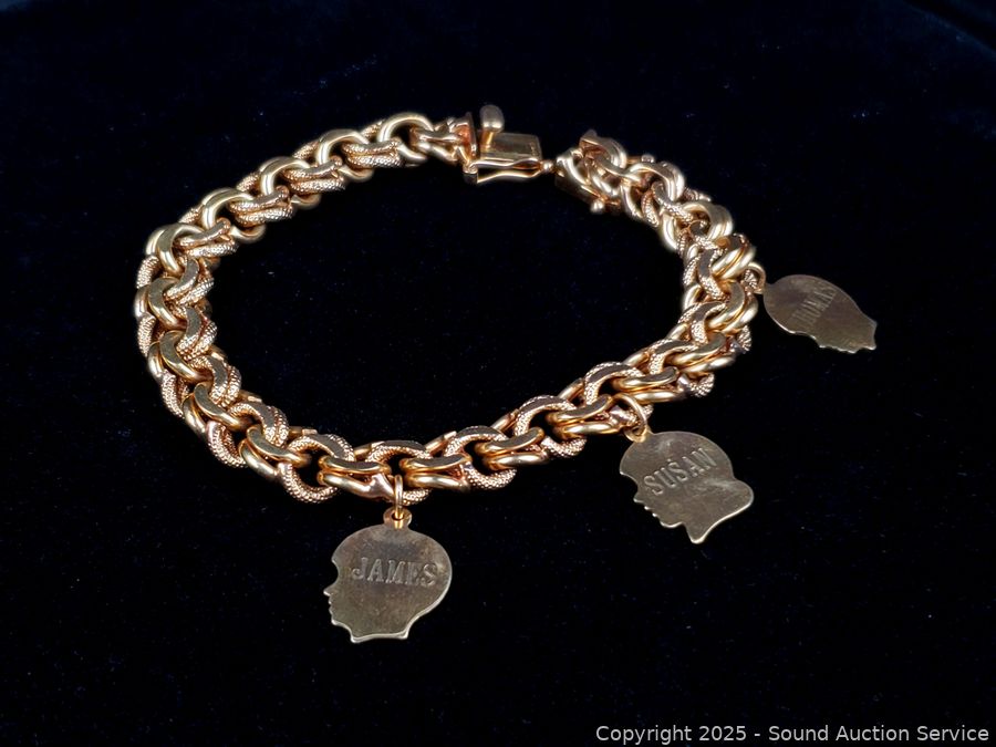 Lot #0118: 14K Gold 7" Byzantine Chain Bracelet w/3 Charms