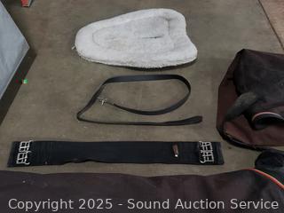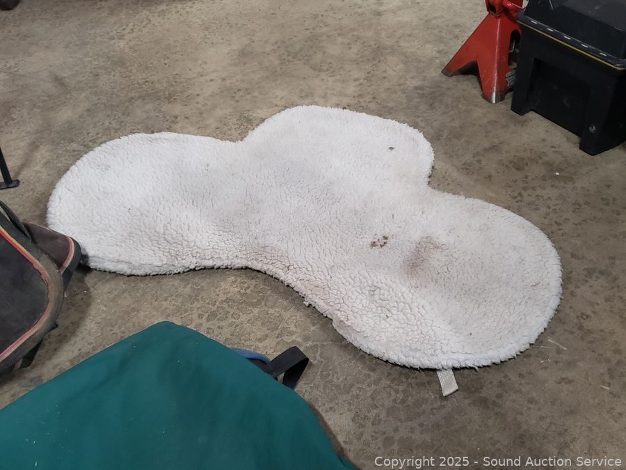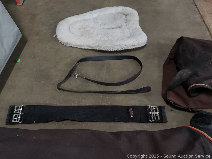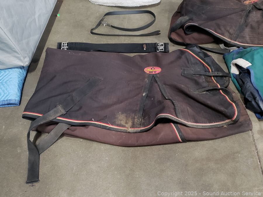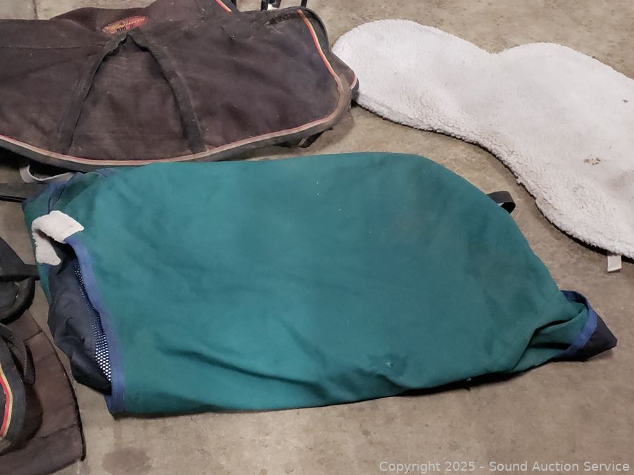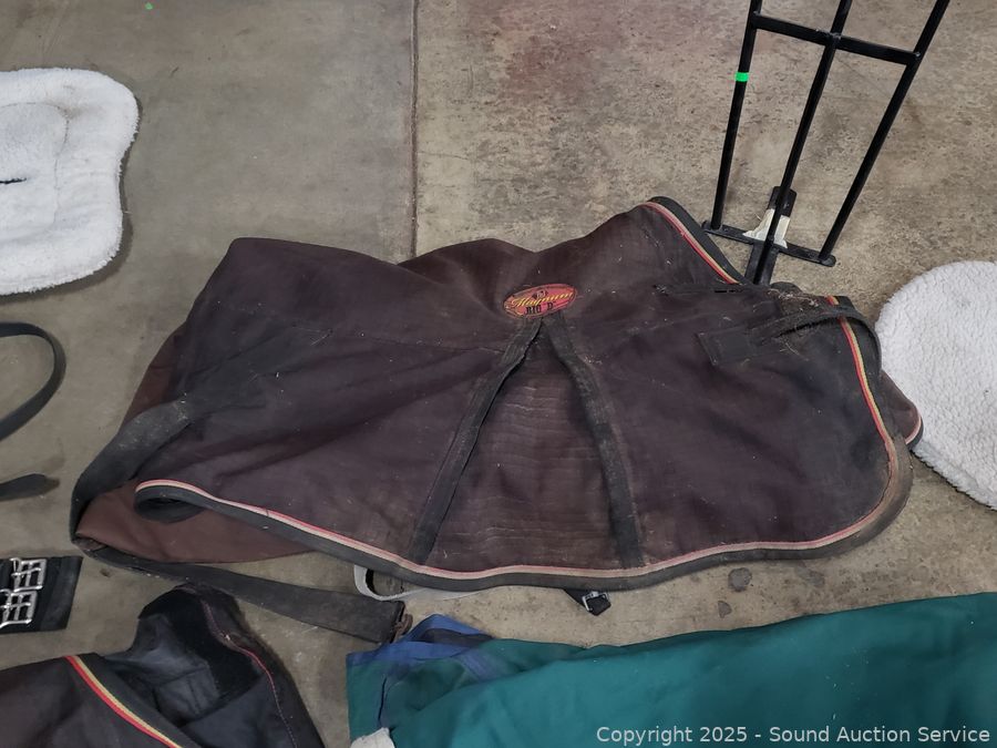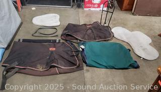 Lot #0043: 3 Horse Covers, 2 Saddle Pads, Saddle Rack