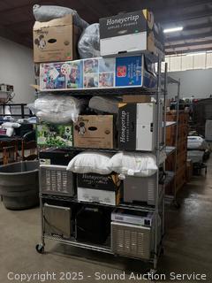 Countertop air fryers, down pillows, other tables, sneakers, sandals, Step-2 watertable, digital scale, hand blender, sheets, etc. ATTN: All items are used, may be missing pieces, damaged, not functioning, complete, no issues, etc. All items as is. Refer to photos for more details. Cart NOT included.