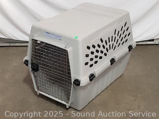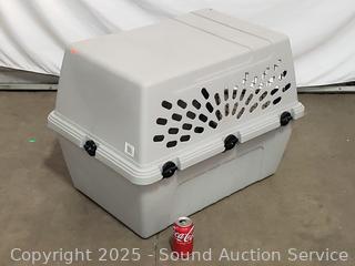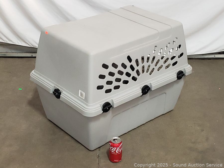 23" H x 31" L x 22" W. Some rust spots on the door, weathering. Refer to photos for more details.