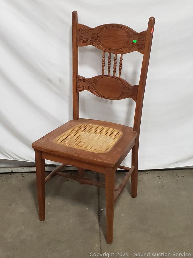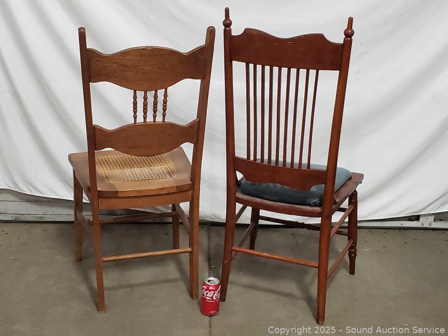 Lot #0066: Vintage Spindle Back & Cane Bottom Accent Chairs