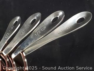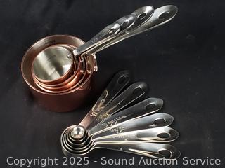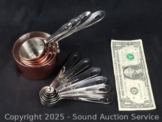 Lot #0300: 10pc Miu Copper Clad Stainless Measuring Cup & Spoons Set