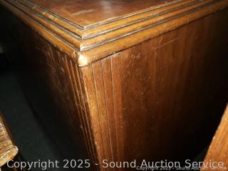 315 Lots including Limited 1987 Steinway Wittington Grandfather Clock w/COA, Mission Style Oak Dining Table Set, Frederic Remington Bronze Sculptures, Executives Burl Maple Desk, Victrola & Edison Phonographs, Vintage Display, Vtg. Wood Trunk, Tons of Blu-ray & DVD Movies, Silver Bars, Coins, Louis Vuitton Clutch/Handbag/Wallet, Vintage Glassware, Uranium Glass, Musical Figures, Frog & Dog Collectible/Figures, Union Pacific Copper Spittoon, Telescope, Night Vision Scope, Spotting Scope, Artwork, Task Tables, Power Tools, Jackalope Taxidermy Mount, Personal Hygiene Products & More!!!