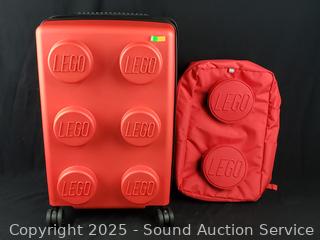 Lot #0235: 2pc Red Lego Block Spinner Carry-on & Backpack