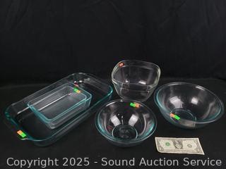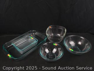 Baking, casserole dishes & bowls. Approx. 8-9" bowls, 5.5" to 16" W/L pans.