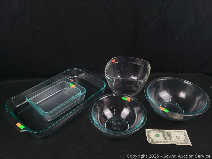Lot #0148: 6pc Pyrex, Rubbermaid Glass Cookware