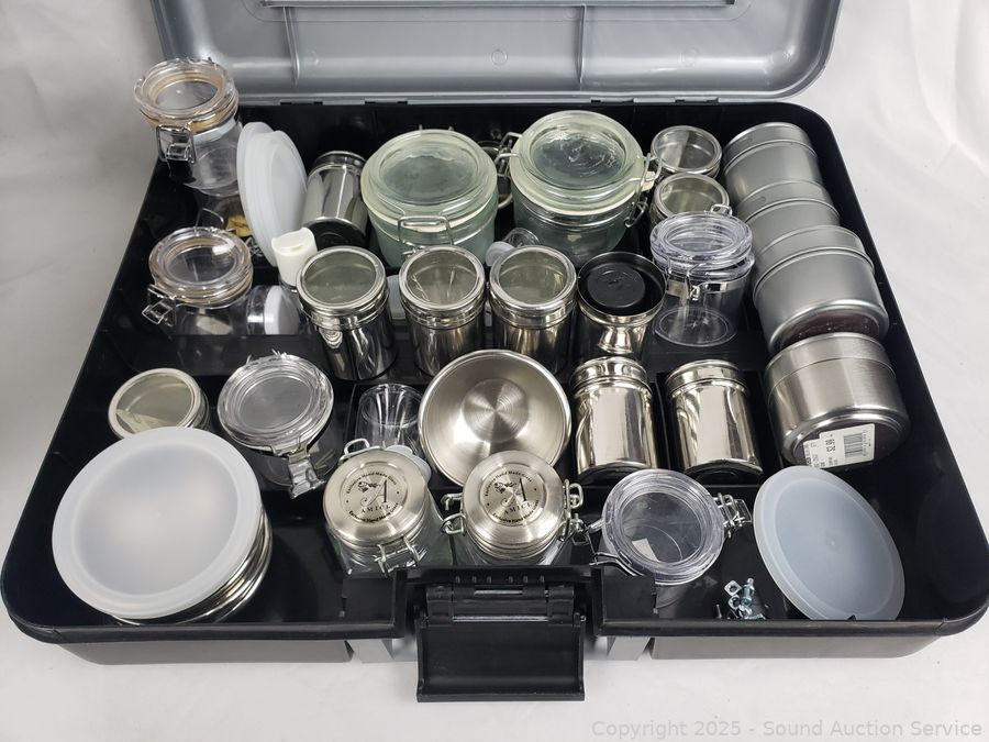 Lot #0149: Assorted Small Organizer Jars & Tote