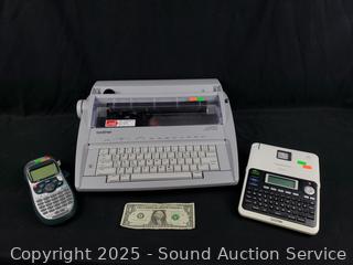 Brother GX-6750 Electronic Typewriter, Brother PTouch PT-2030 Label Write, Dymo Letra Tag label maker. All appear to be functioning as intended.