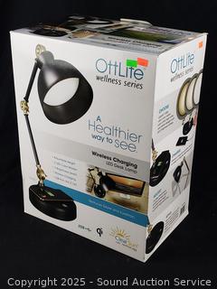 Lot #0296: Ottlite Black Articulating LED Wireless Charging Desk Lamp