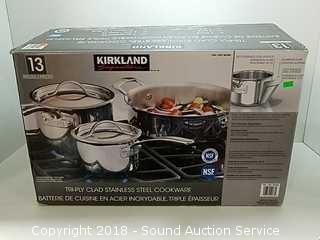 Lot #0014: NIB 13pc Tri-Ply Clad Stainless Steel Cookware Set