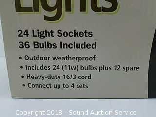 Lot #0102: 48ft 24 Socket Indoor/Outdoor String Lights w/Box