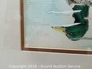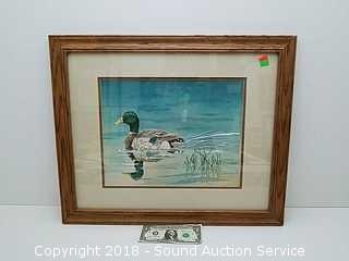 Lot #0060: Artist S/N Framed & Matted Duck Watercolor