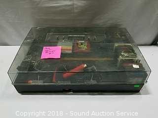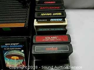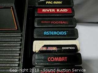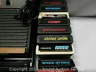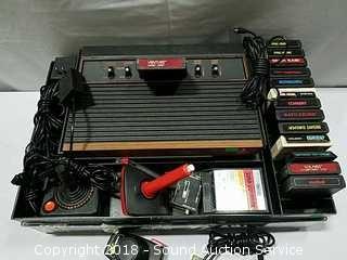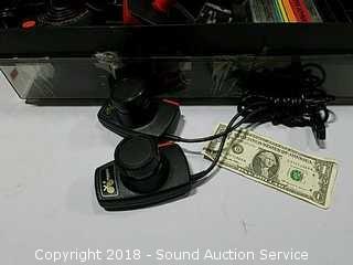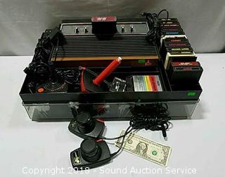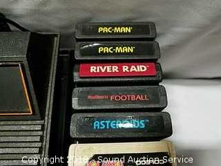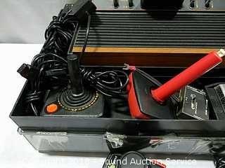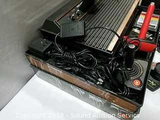 Model CX-2600A. A piece of the plastic is broken on the front. Cannot get it to power on. Comes with (15) games, (4) controllers, RF switches, power cable, and case.