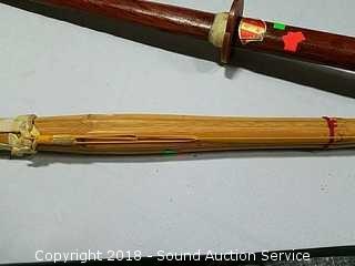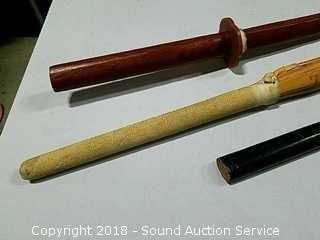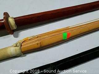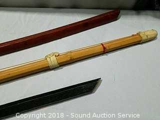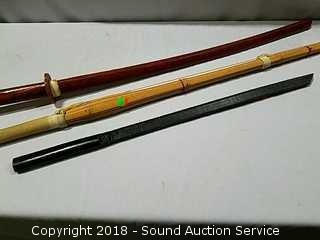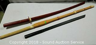 Lot #0291: Bamboo Kendo Shinai & (2) Katana Practice Swords