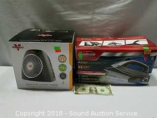 Lot #0118: Sunbeam Aero Ceramic Iron & Vornado Vortex Heater