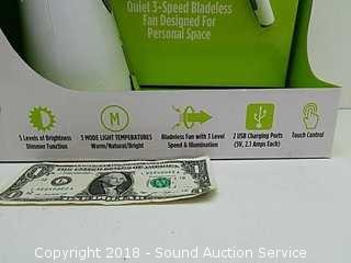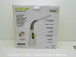 Lot #0198: Ultra-Brite LED Desk Lamp w/Bladeless Fan