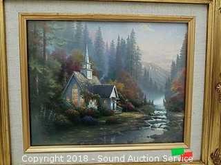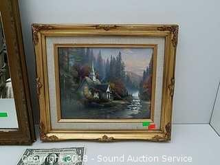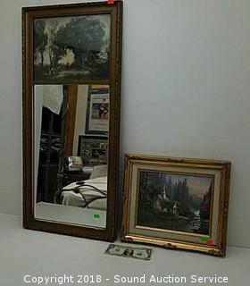 Lot #0084: Vintage Wall Mirror & Kinkade Print