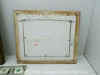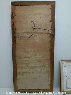 Mirror has artwork built in to the top of it, approx. 31-1/2" x 14". Kinkade print is in a gold gilded frame, 13-1/2" x 11-1/2".