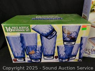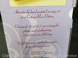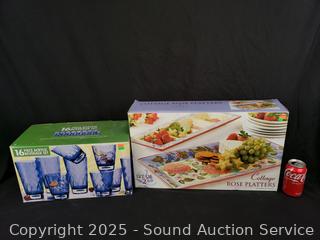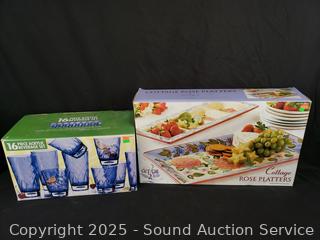 Lot #0273: 16pc Acrylic Beverage Set & 2 Cottage Rose Platters