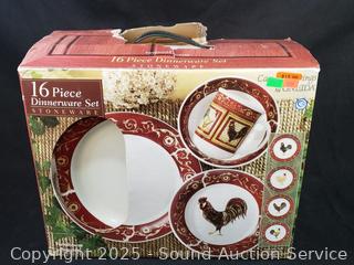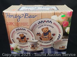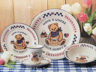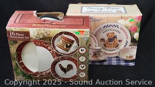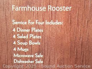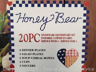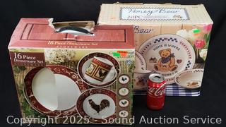 Lot #0271: 16pc Farmhouse Rooster Dinnerware Set, 20pc Honey Bear Dinnerware Set
