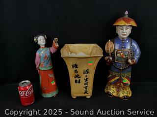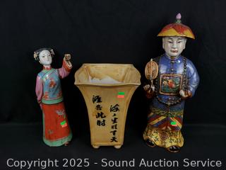 Lot #0192: 2 Porcelain Asian/Oriental Figures & Vase