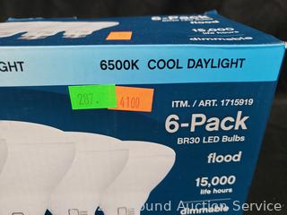 Lot #0287: 6pk Feit BR30 LED Dimmable Light Bulbs