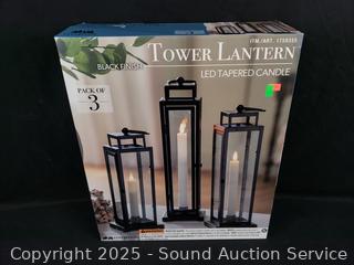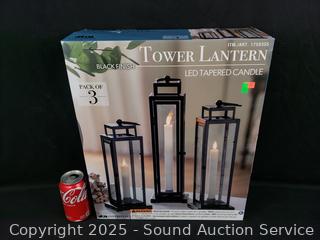 Lot #0306: 3 Black LED Tapered Candle Tower Lanterns w/Remote
