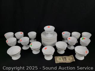 16 saucers, 10 footed goblets, 6 desserts. Don't see any major issues.