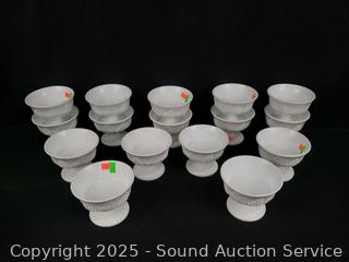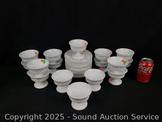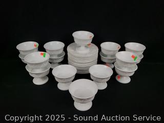 Lot #0230: 32pc Milk Glass Grapevine Saucers & Dessert Dishes