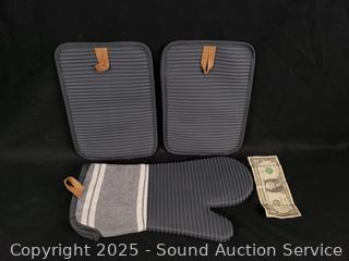 Lot #0223: 3pc KitchenAid Gray Oven Mitt & Potholders Set