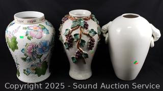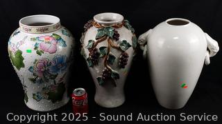 Lot #0167: 3pc Large Porcelain/Pottery Vases