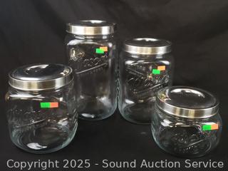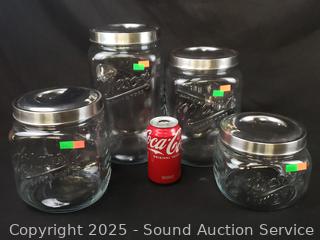 Lot #0270: 4 Mason Graduating Clear Canisters w/Lids