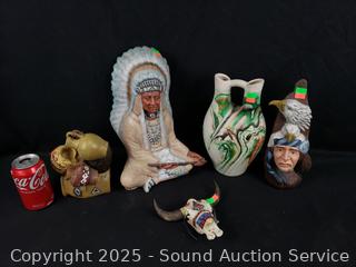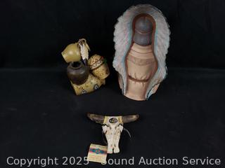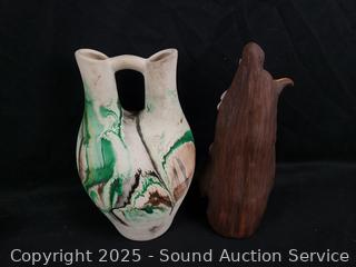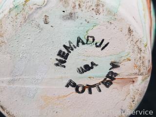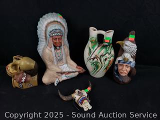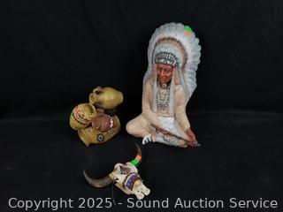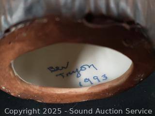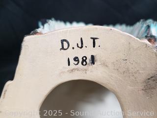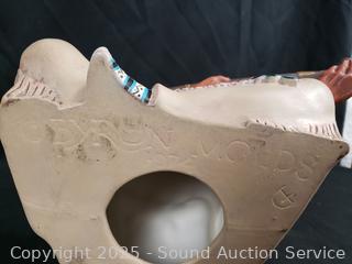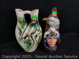 Nemadji Pottery Vase 11.5" H x 6" Dia. Pottery DJT signed Chief Figure, Ben Tryon 11" painted sculpture, Composite Pot Sculpture.
