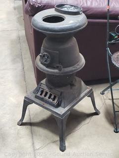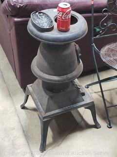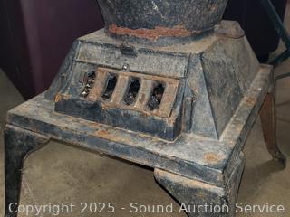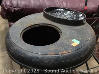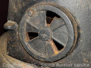 Some rust, wear to finish. 7" x 4" vent hole. 31" H x 12.5" x 14" overall. Full of ash, garbage, needs cleaned.