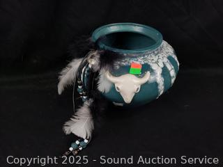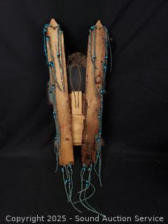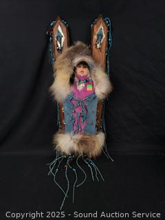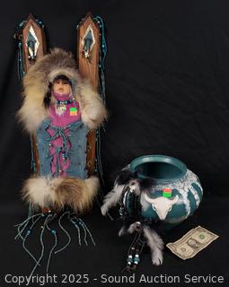 Lot #0030: Native Crosse Fox Papoose w/Doll & Ceramic Pot