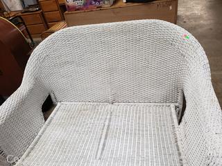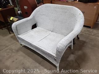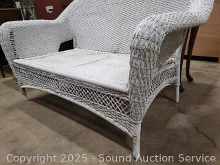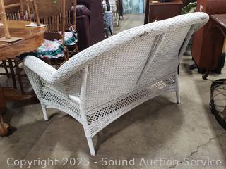 Lot #0023: White Wicker/Rope Woven Loveseat