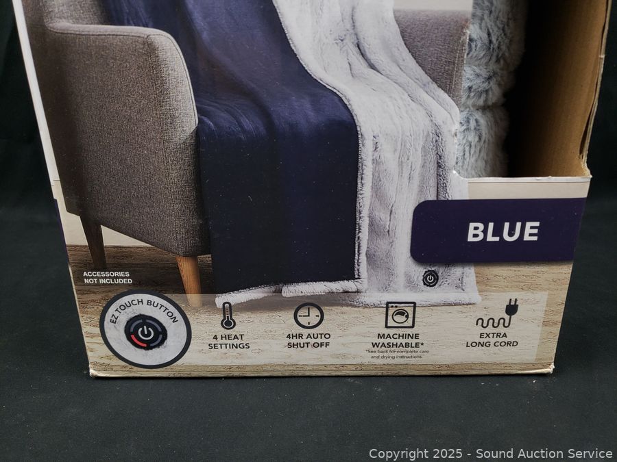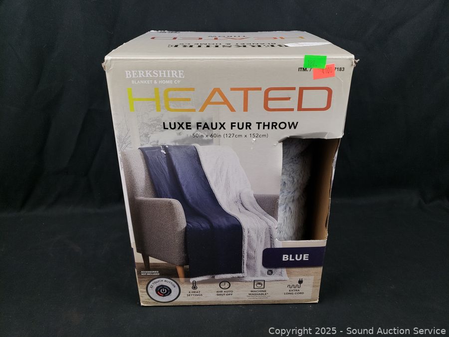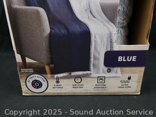 Lot #0182: Berkshire Heated Blue Luxe Faux Fur 50" x 60" Throw