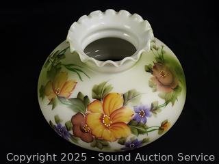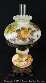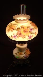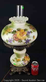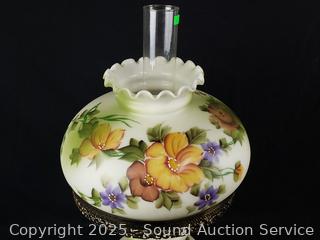 Lot #0161: Vtg. Painted Glass Shade Lamp w/Chimney