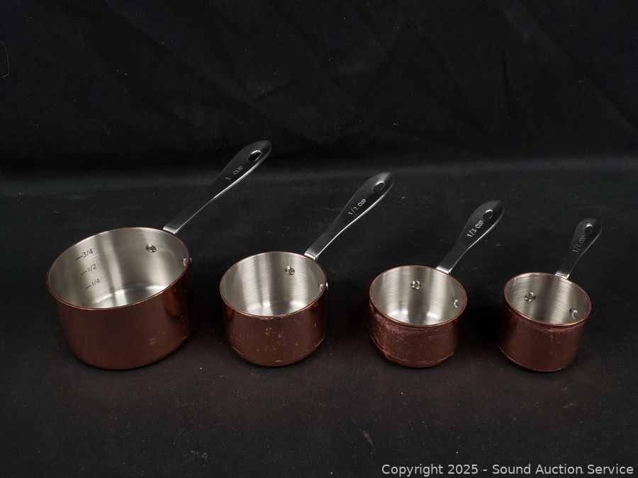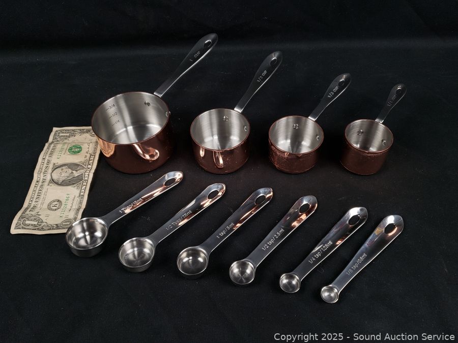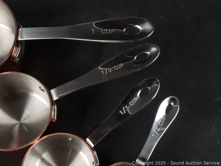 Lot #0264: 10pc Miu Copper Plated Stainless Measuring Cup & Spoons Set