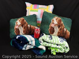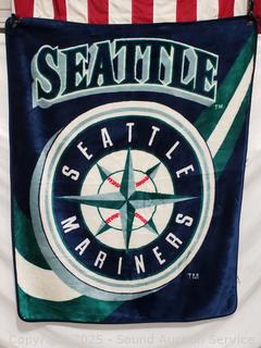 Lot #0297: 2 Seattle Seahawks & Mariners Plush Throws & 3 Throw Pillows