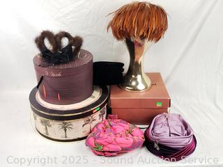 Lot #0258: 3 Hat Boxes w/5 Ladies Hats